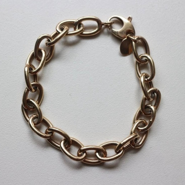 ほどよいボリュームがながらもリラックス感のあるチェーンが、手もとのアクセントに。 シルバー製にゴールドコーティングがなされているため、お手元をぱっと明るく見せて女性らしく仕上げてくれます。 ハンサムなスタイルから遊び心のあるカジュアルなスタイルまで、幅広く活躍しそうです。 --- サイズ: (チェーン長さ) タイプA:約18cm、タイプB:18.6cm 素材:シルバー925 ※ 時代物ですので擦れや歪みによる若干のがたつき、窯傷(焼成中に出来たもの)などがある場合もございますので、味わいとしてお愉しみいただける方やご理解いただける方のみご購入くださいませ。また写真ではわかりにくい部分もあると思いますので、気になる点がございましたらお気軽にご質問いただけますようお願い申し上げます。 ※ 梱包につきまして、ギフトラッピングは承っておりませんので予めご了承くださいませ。