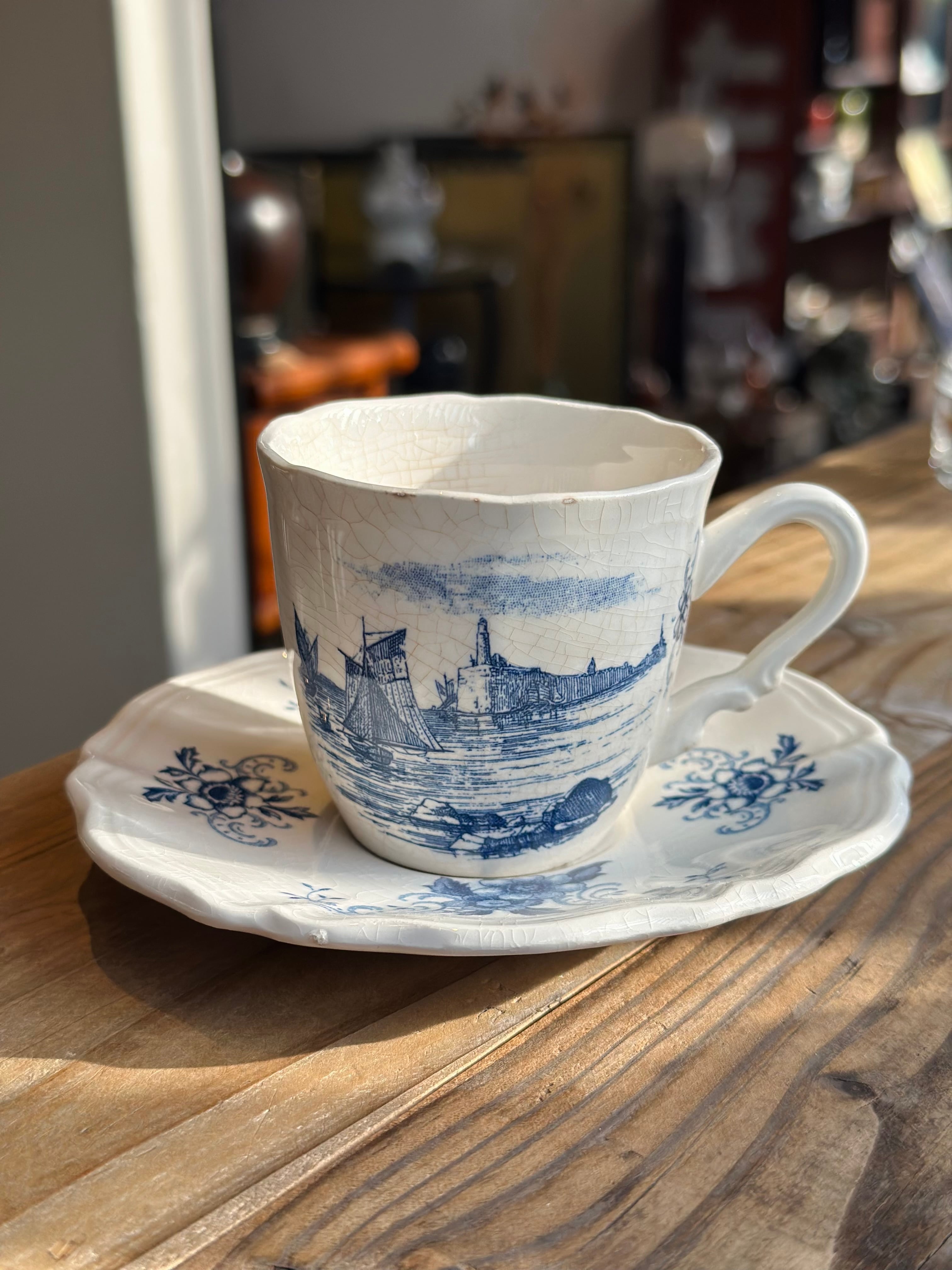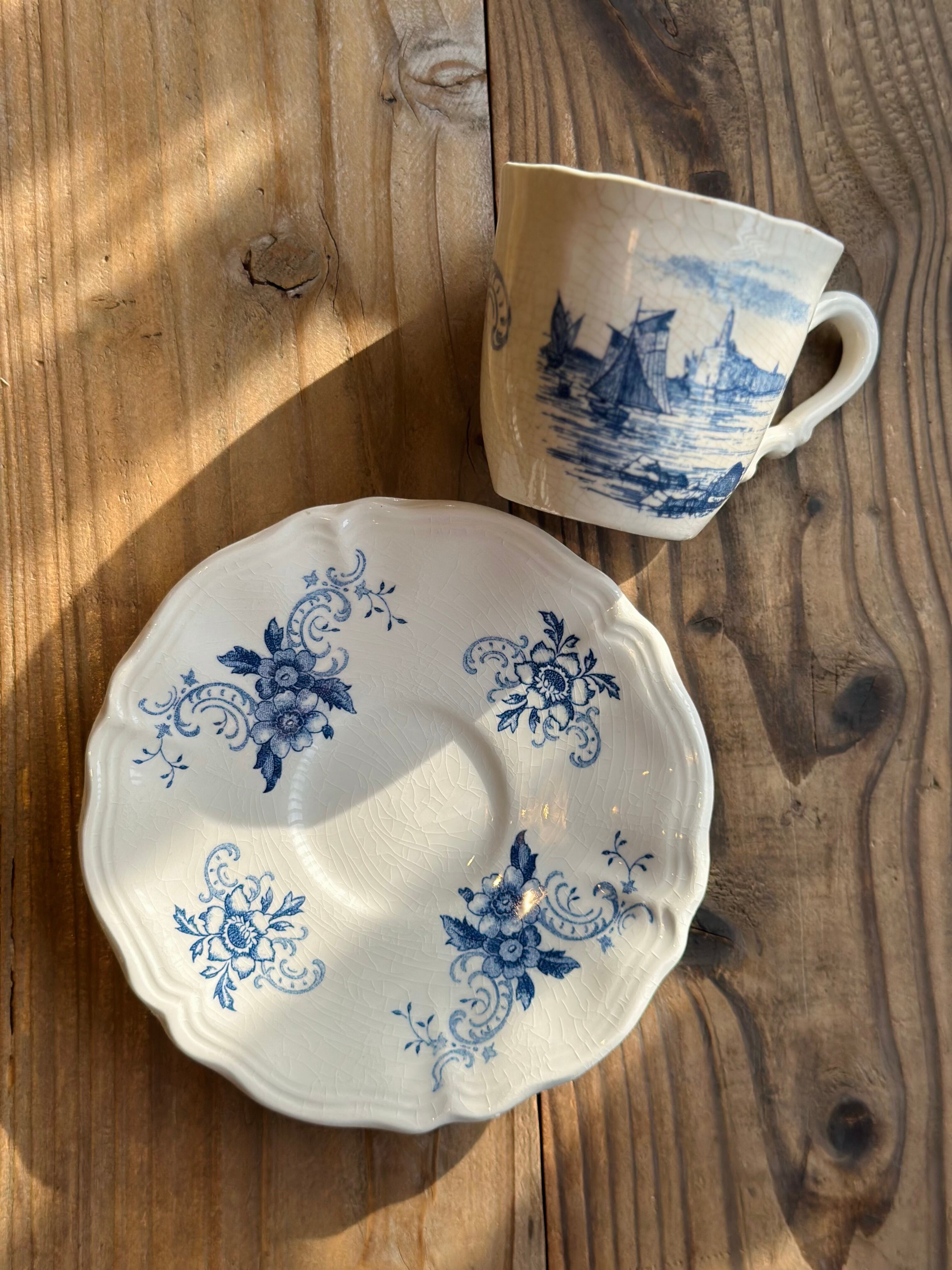 フランスの陶磁器の歴史にかかせない存在のSarreguemines(サルグミンヌ・1770年創業)のカップ&ソーサー。