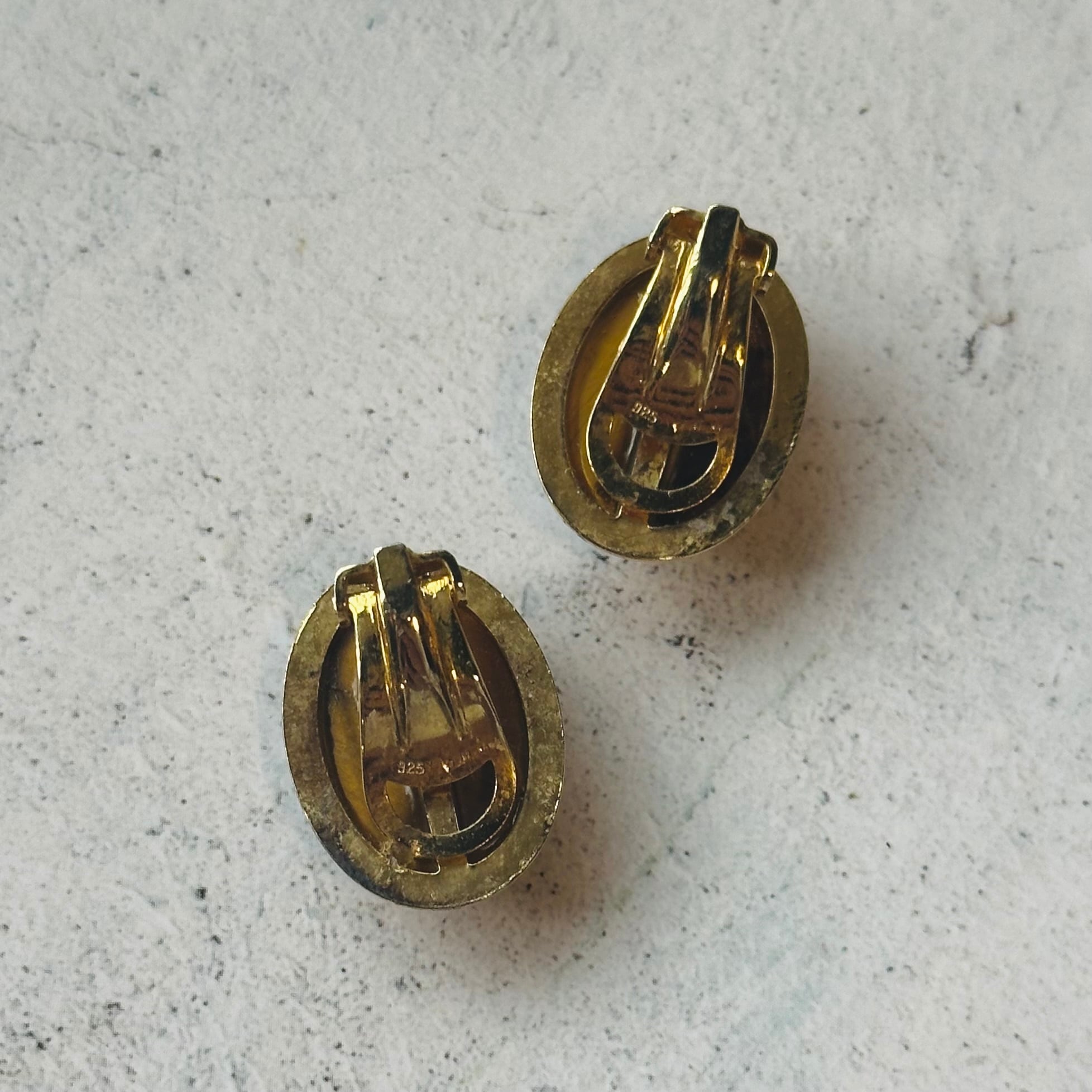 シックなカラーのタイガーアイと華やかなゴールドの組み合わせのヴィンテージイヤリングです。