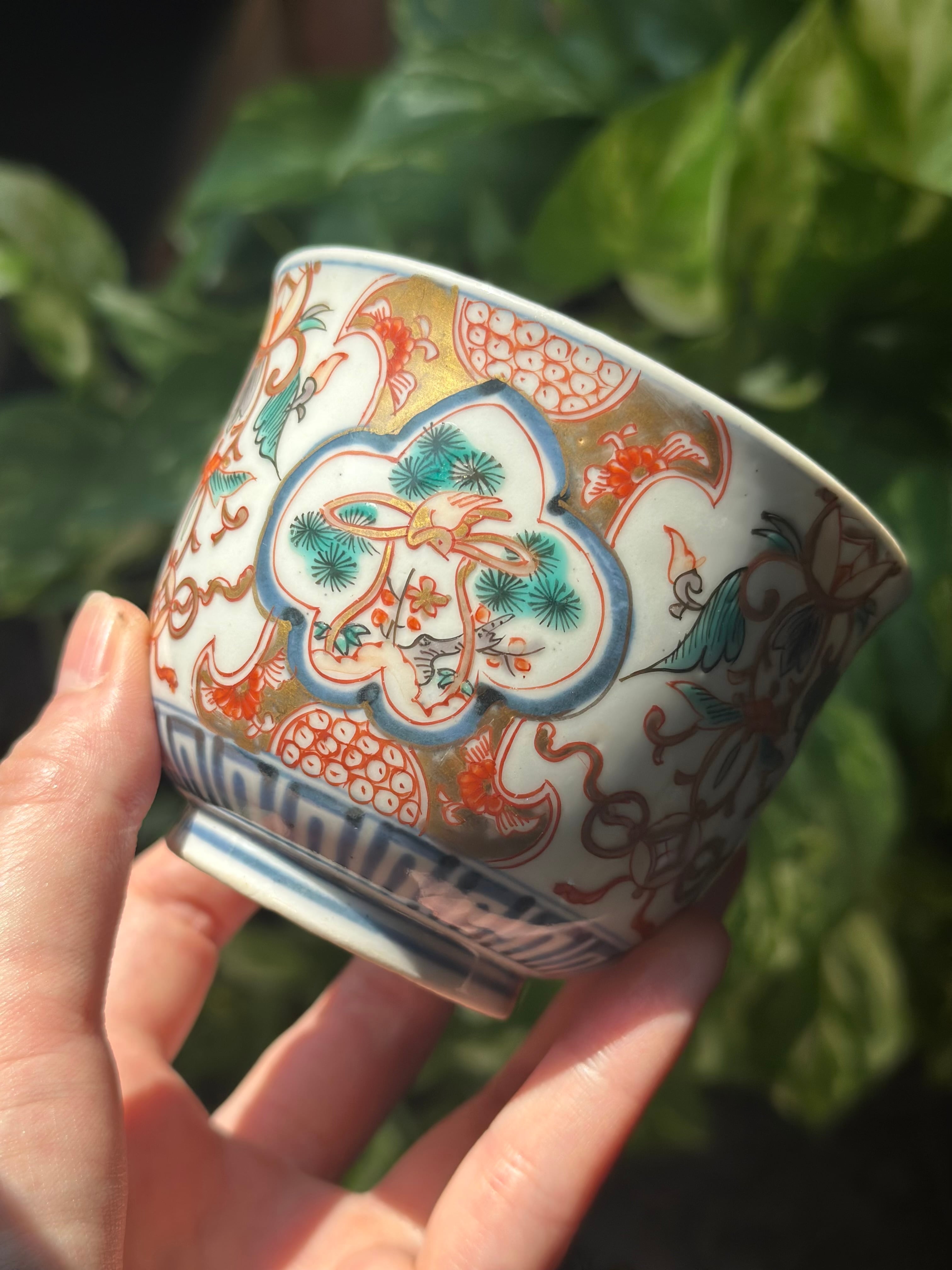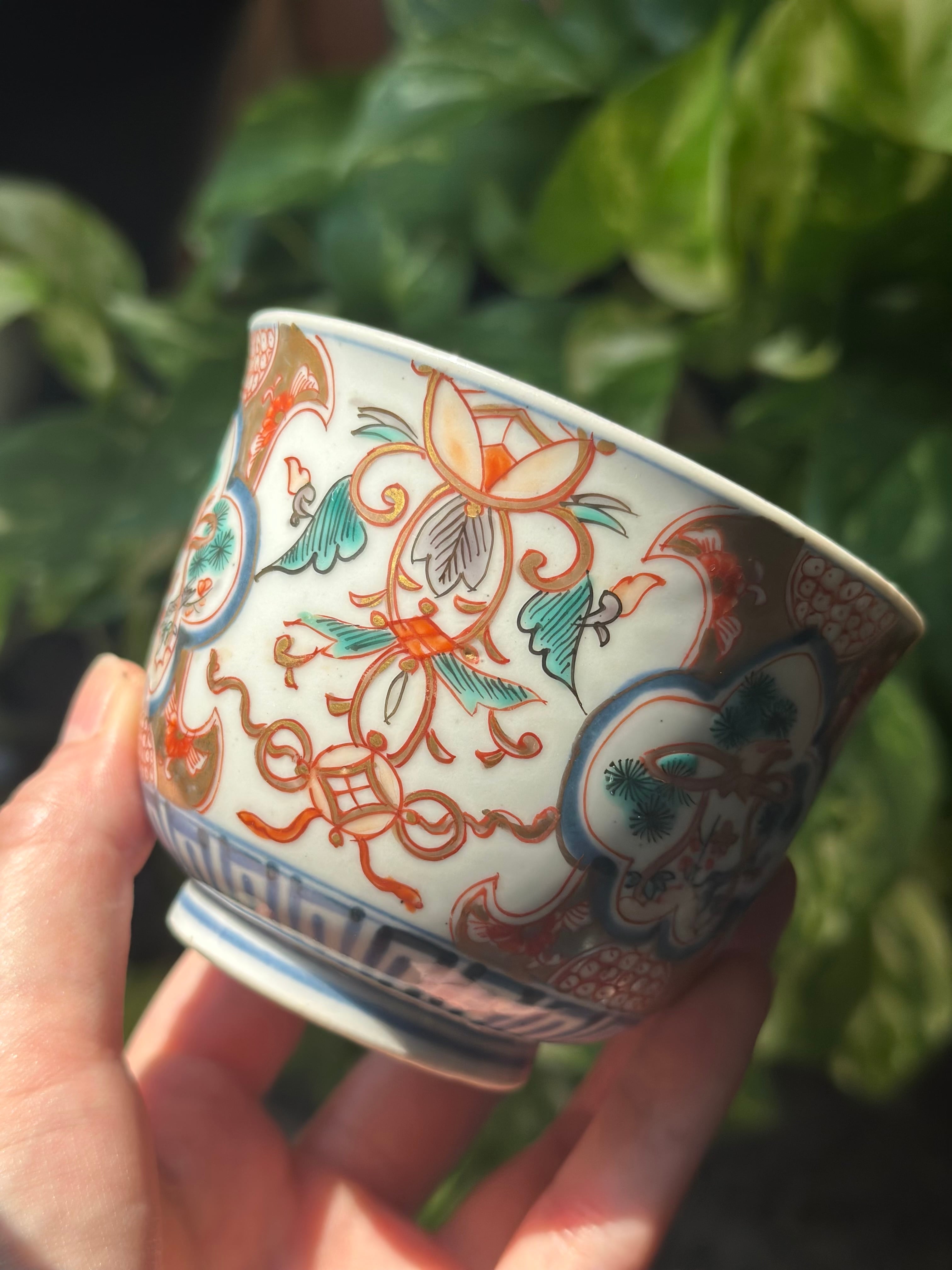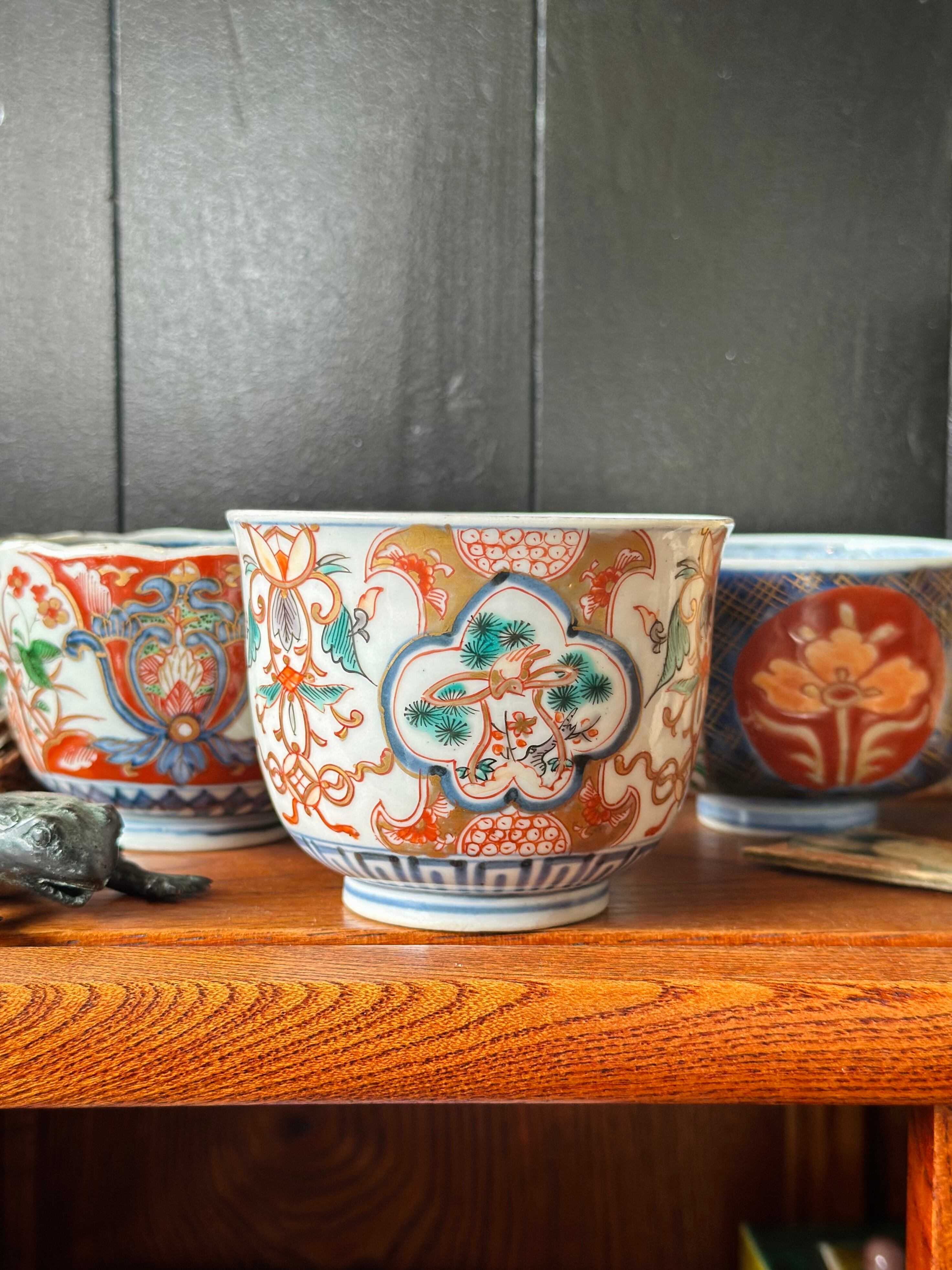 【残り1点】伊万里 麒麟と松鶴文 赤絵の蕎麦猪口 / 湯呑