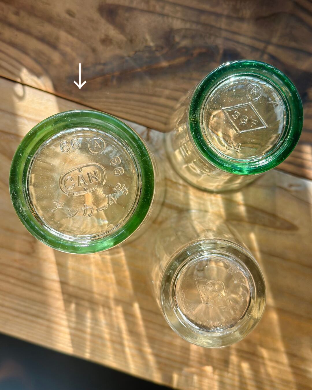 底面にSGF・SGK・CANと入っているのは、島田硝子製造所(明治21年創業、現:東洋ガラス株式会社)の製造マークです。
