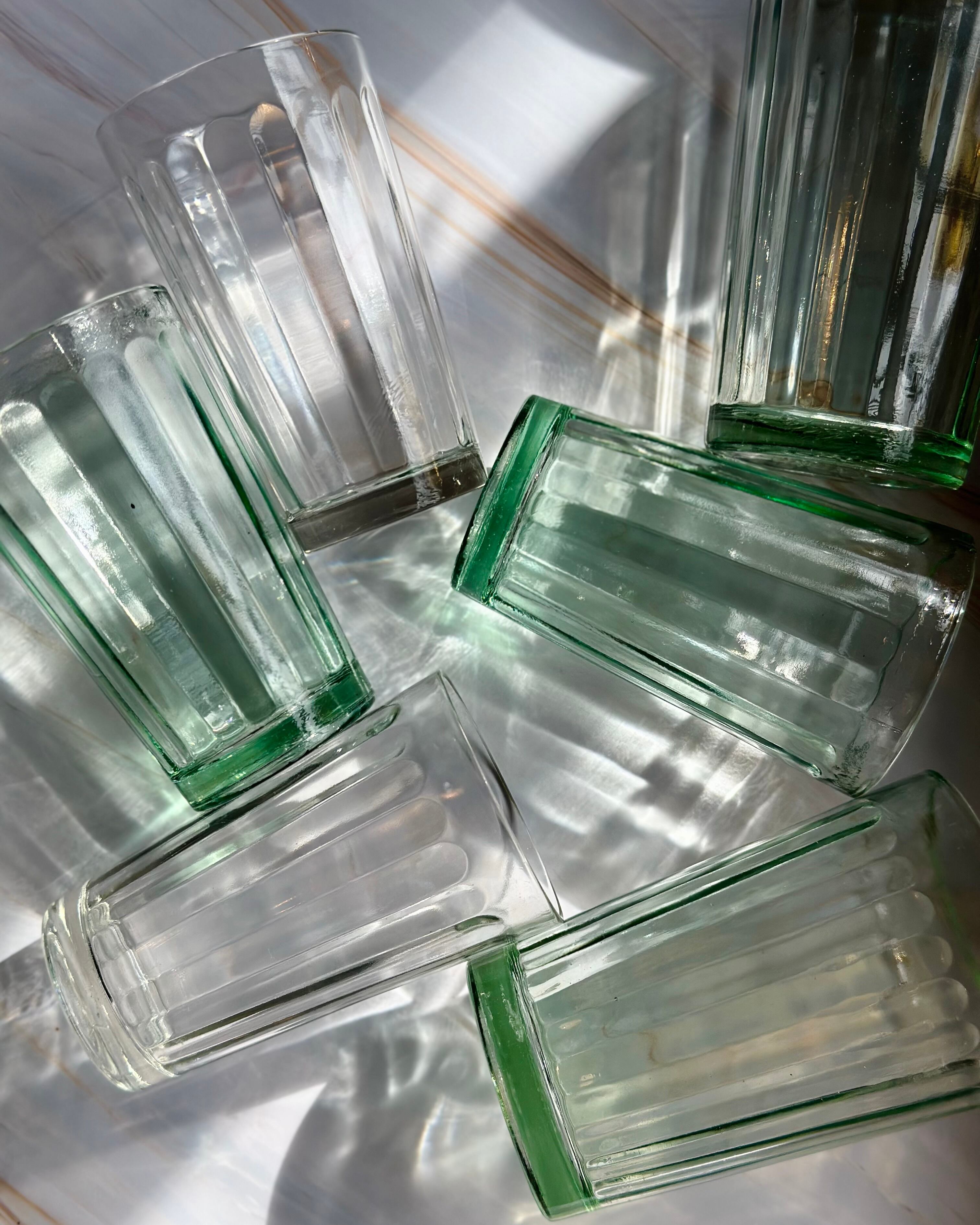 もともとは第二次世界大戦の真っ只中、金属不足の代用品として製造されたプレスガラス製の保存容器です。