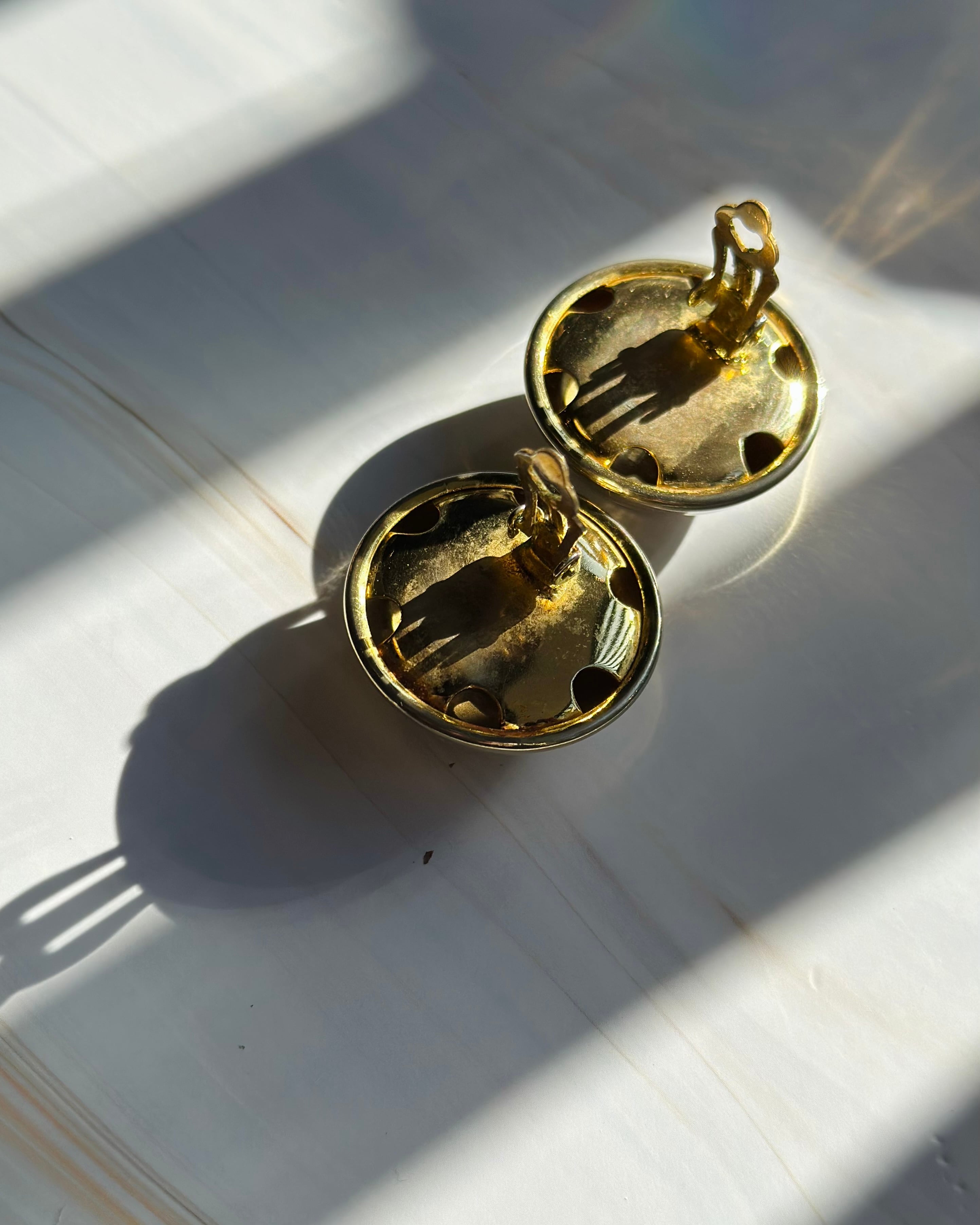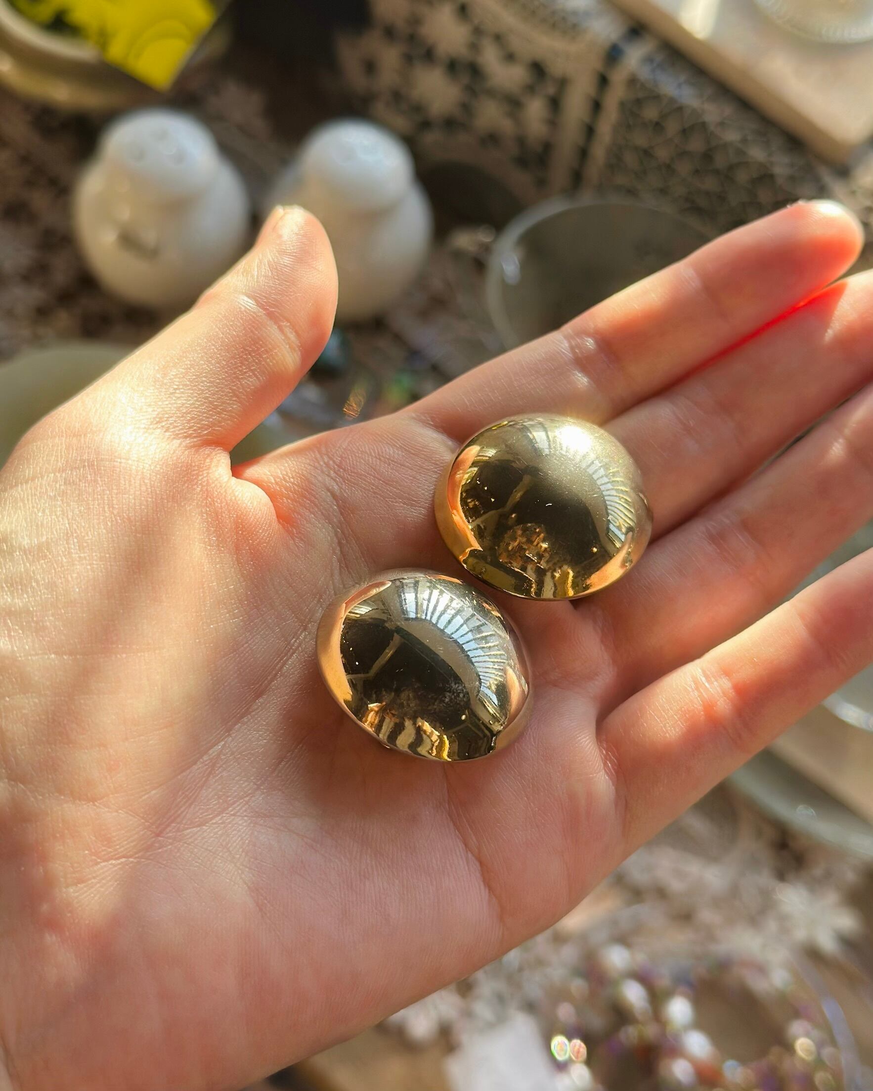 光沢感のある大ぶりのヴィンテージイヤリングは、お顔周りをぱっと華やかにしてくれます。