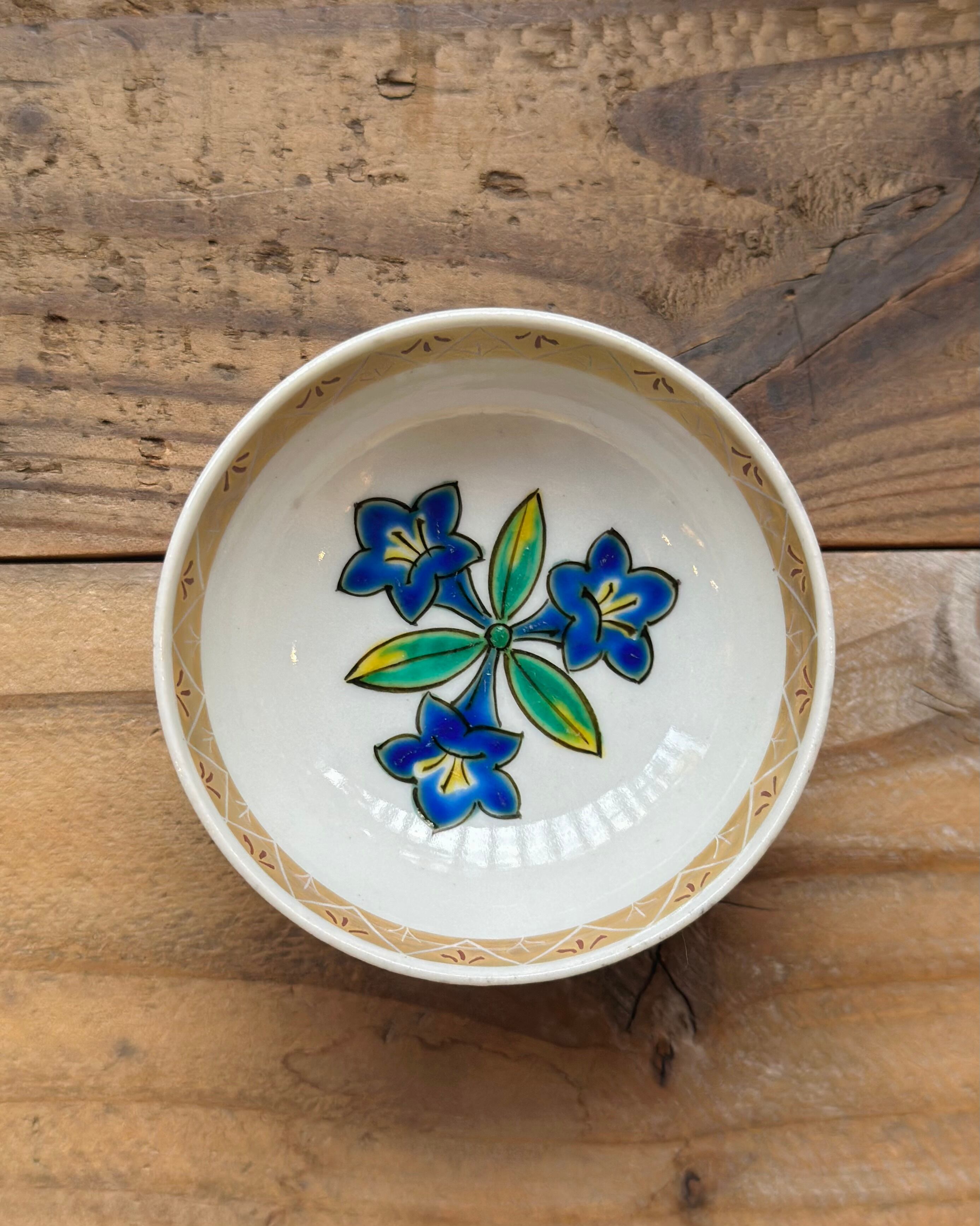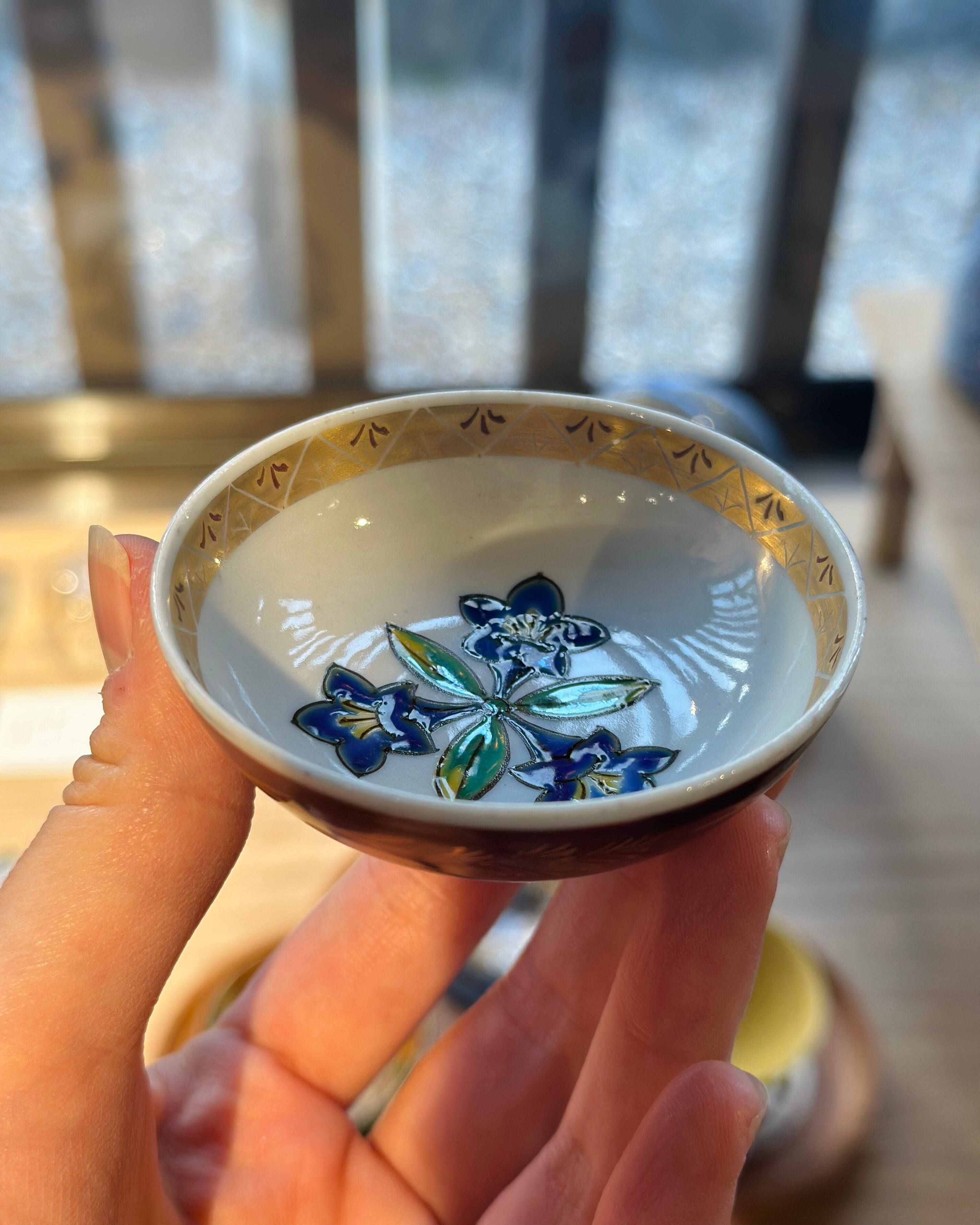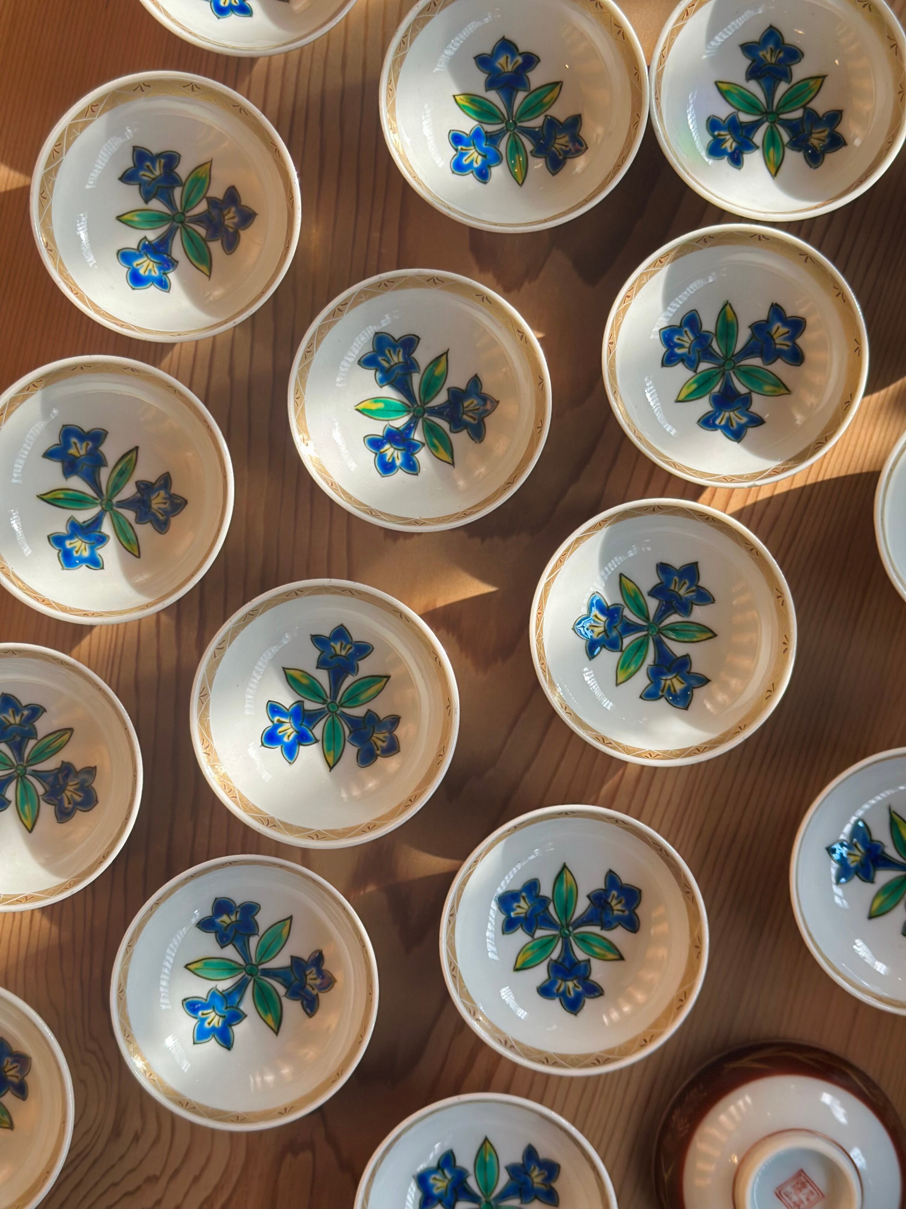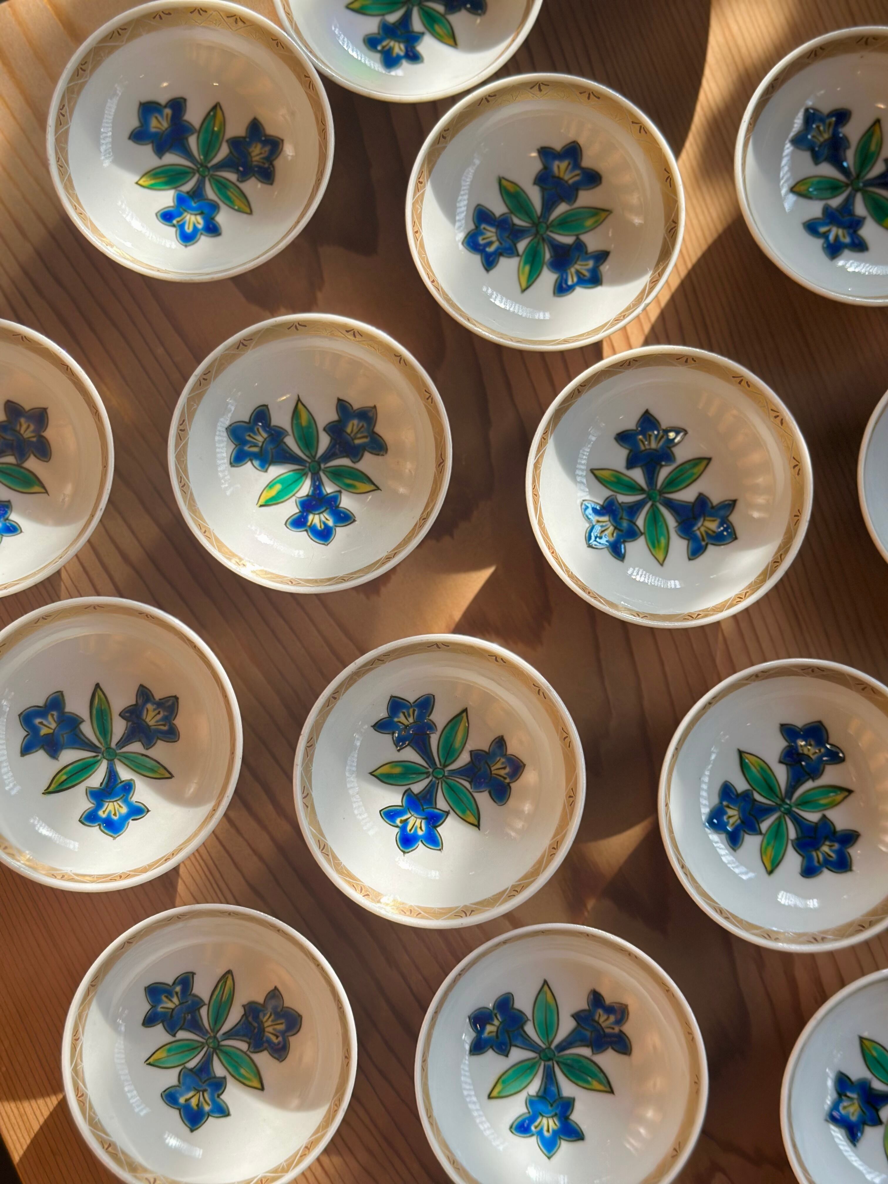 秋にぴったりな竜胆絵の盃は、九谷焼の名窯元・錦山窯によるものです。
