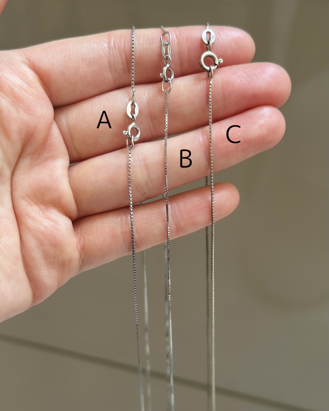 (B)チェーン長さ 約45.5cm 一番長さがあり、光沢感が強いです
