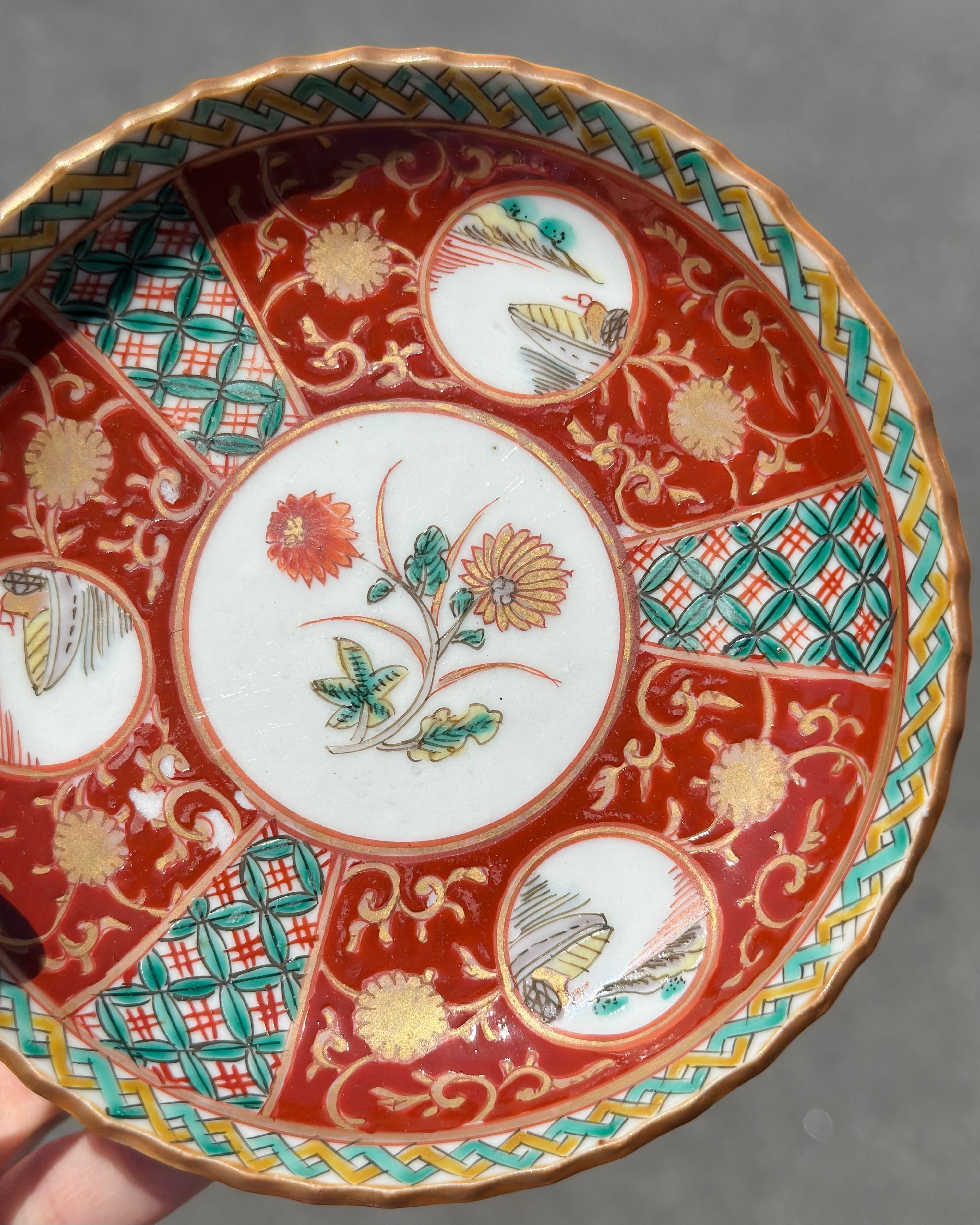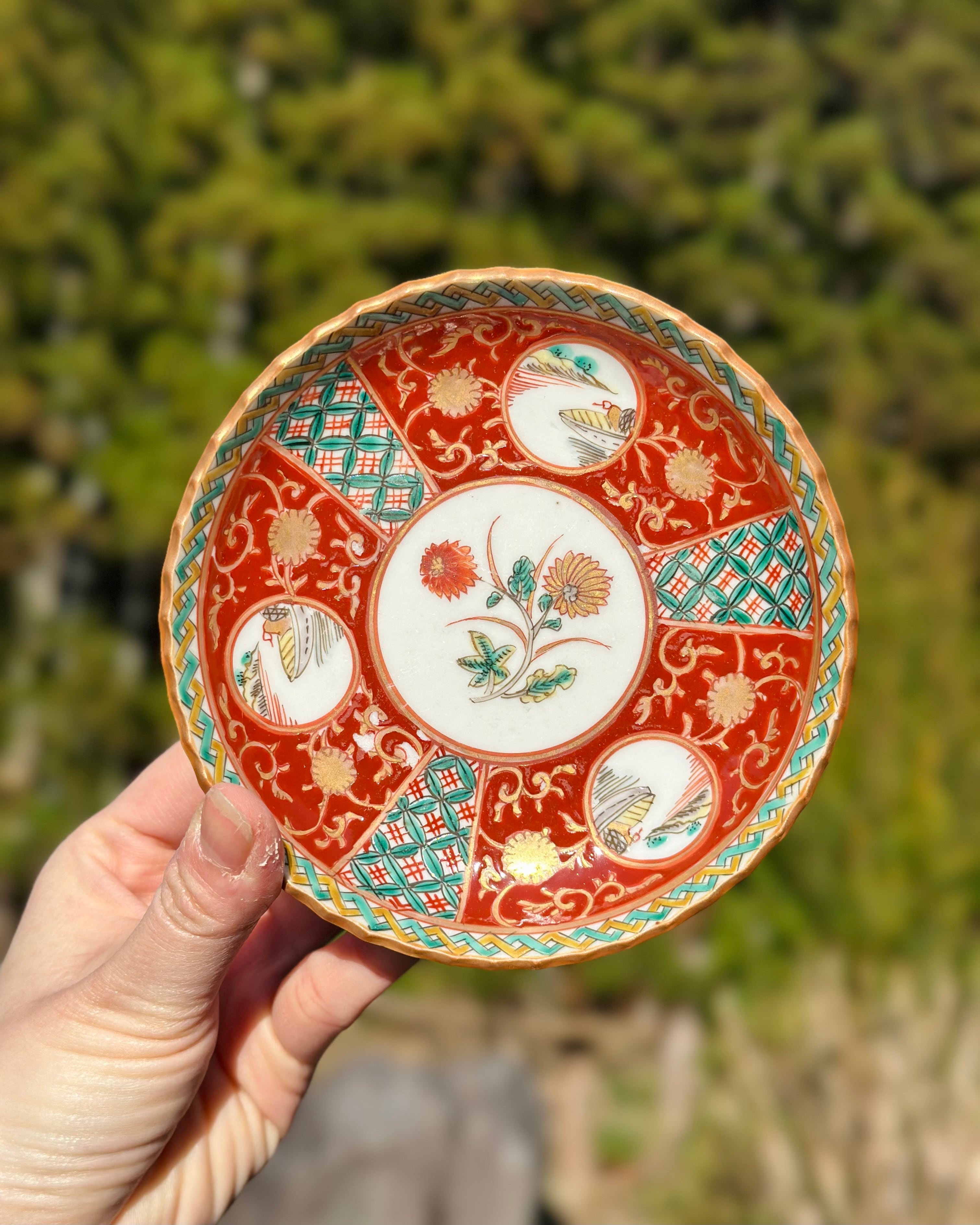 色絵には珍しいイゲ(縁に鉄釉を塗った焦げ茶色のギザギザ)が施されております