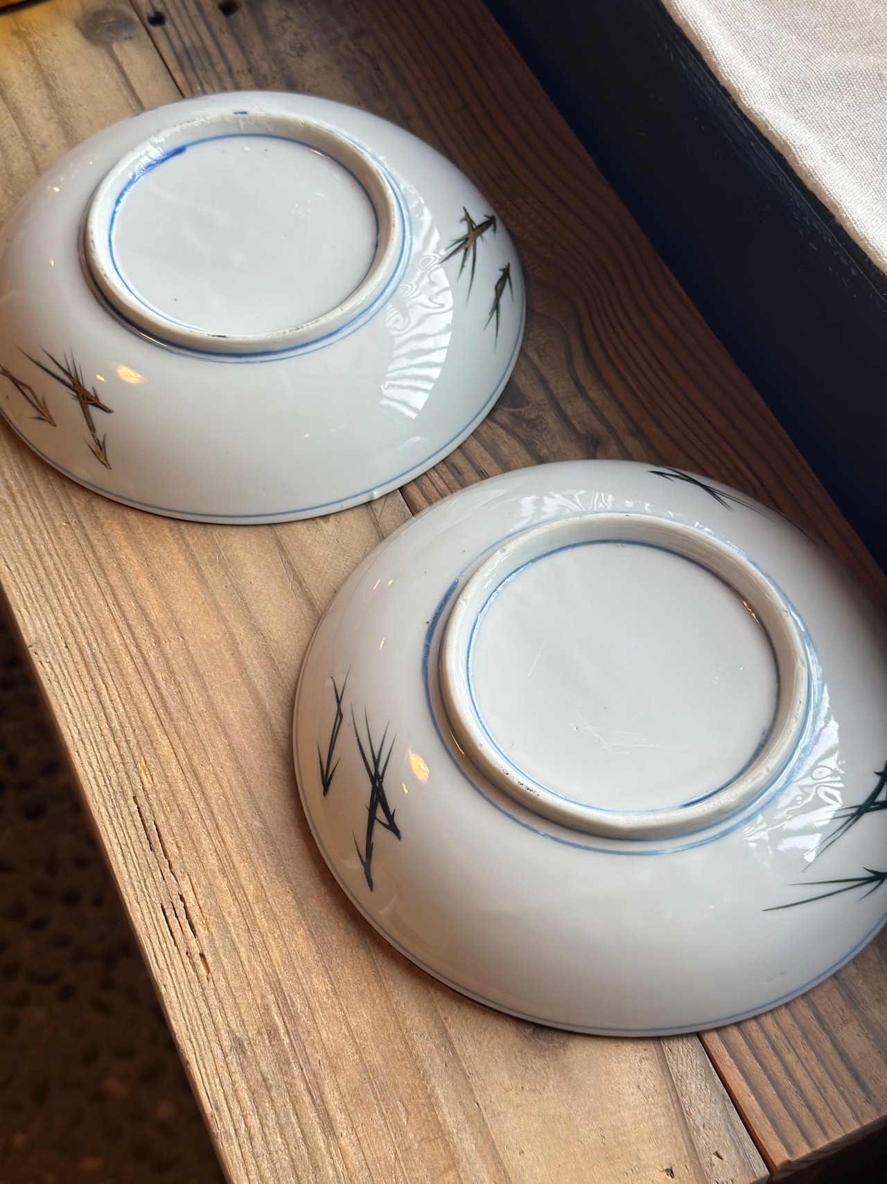 椿紋と見込みの環状松竹梅が上品な印象で、染付の手作業の味わいが光ります。