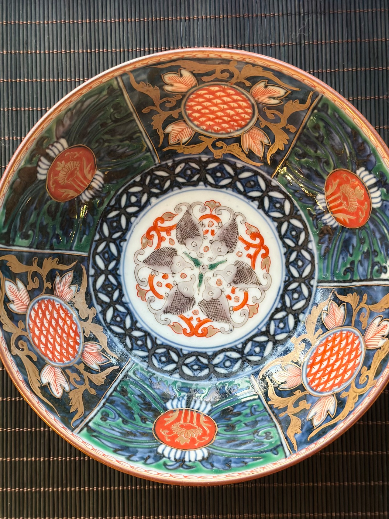 端正な菊型の全面に緻密な絵付けが施され、色鮮やかな色絵や金彩が豪華絢爛で、収集家にも大変人気がございます。