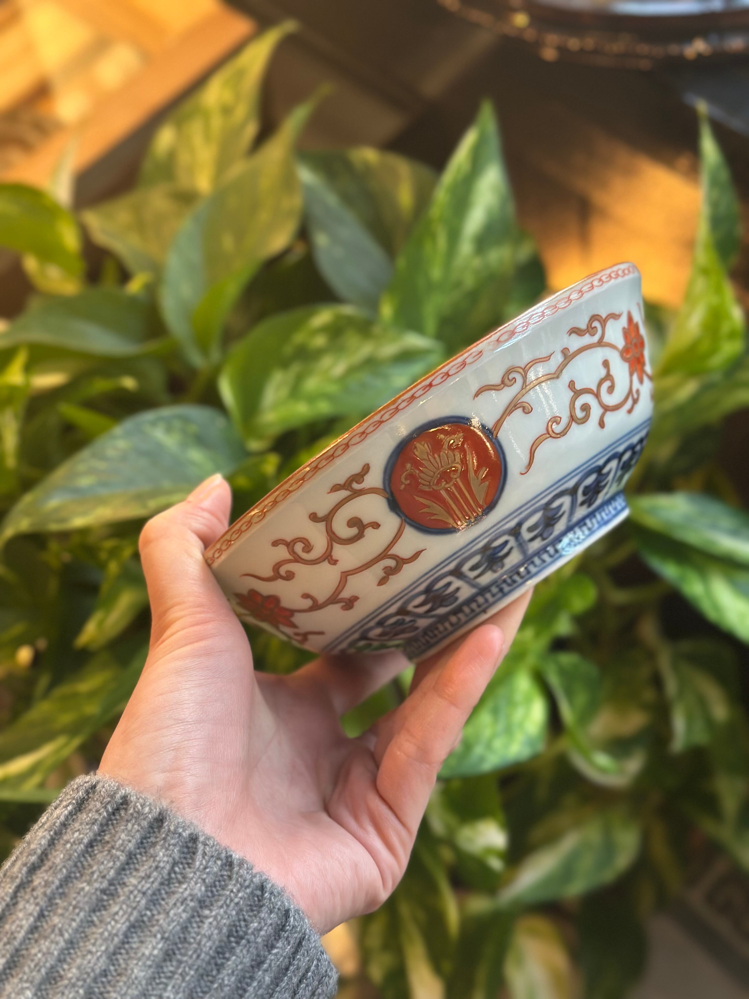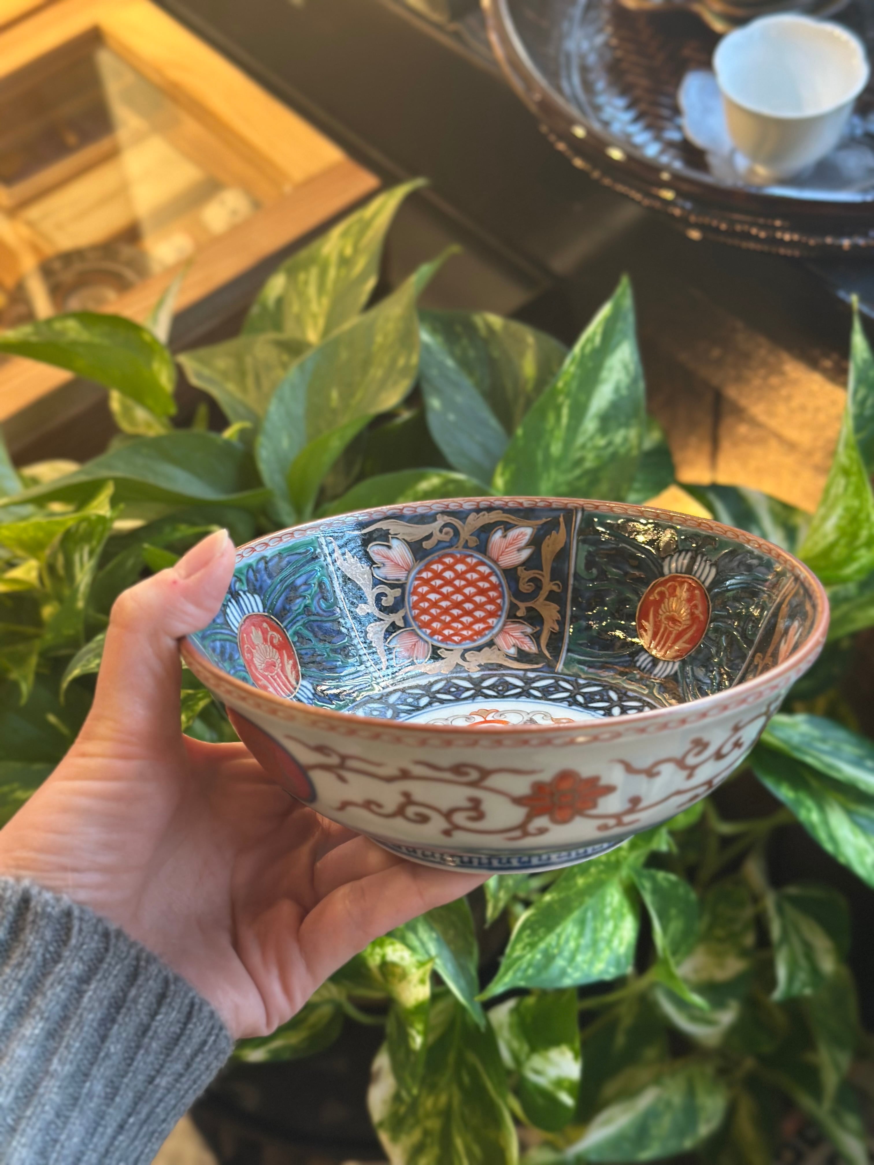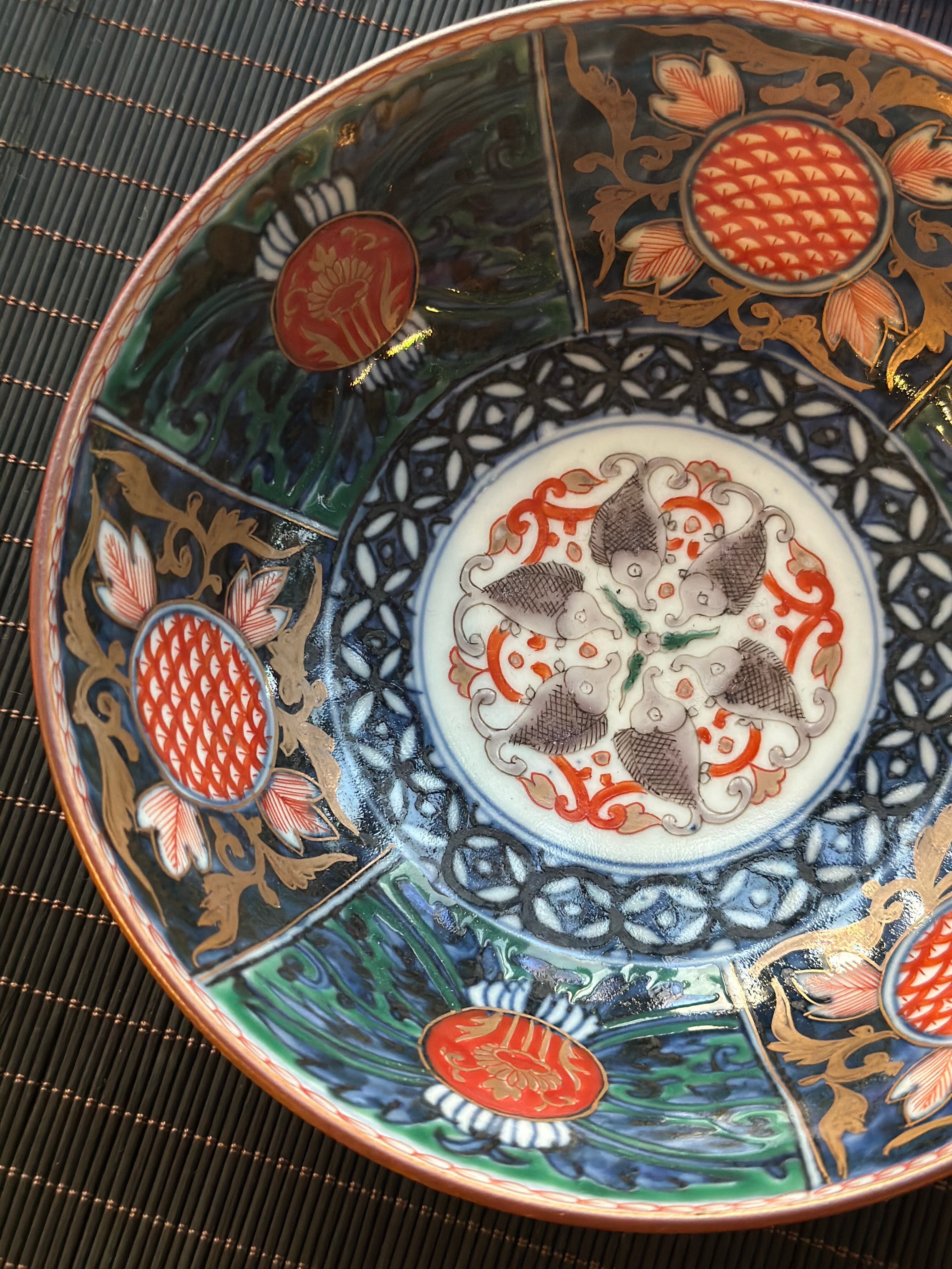 【残り1点】大聖寺伊万里 丸紋と魚が躍る中鉢